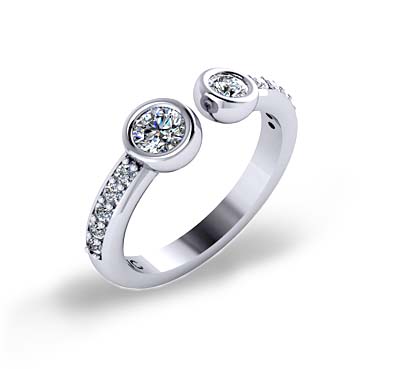 Bezel Set Open Two Stone Diamond Ring 5/8 Carat Total Weight