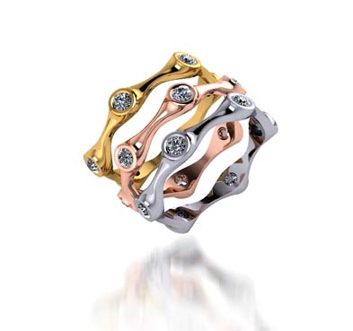 Bezel Set Tri-Color Diamond Stackable Ring .90 Carat Total Weight