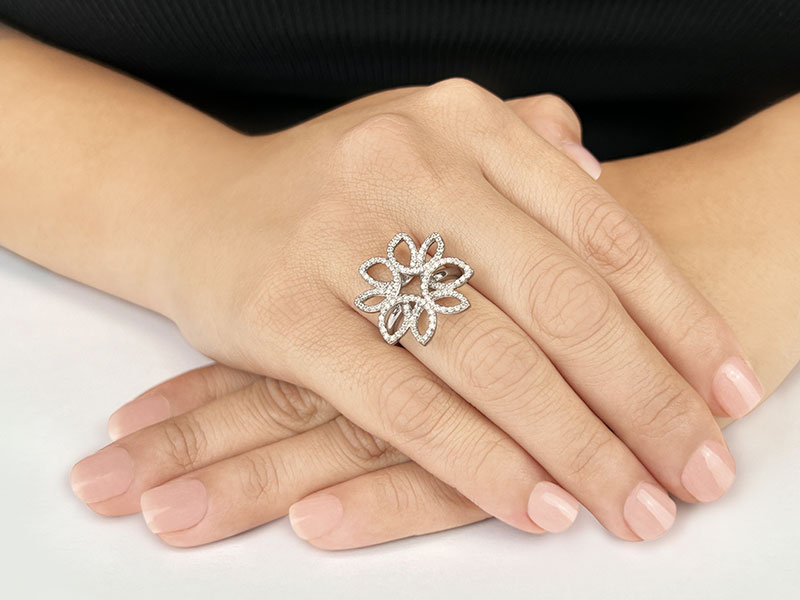 Bold Diamond Flower Ring In 0.68 Carat Total Weight