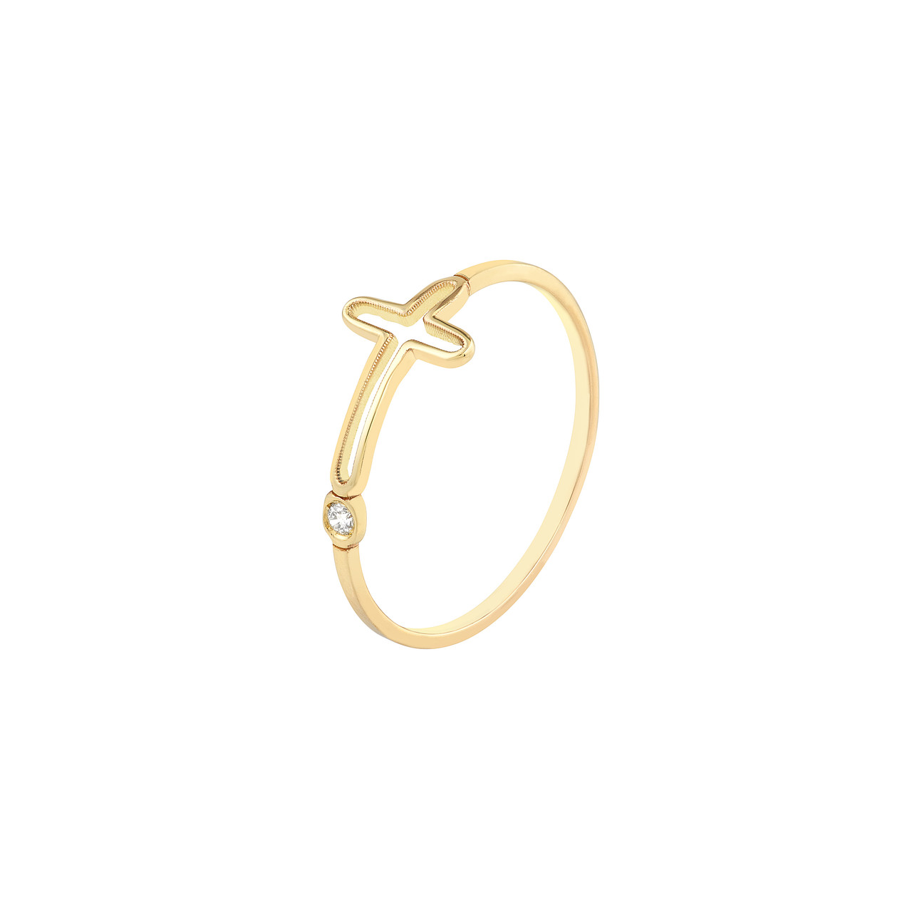 Cut Out Cross & Diamond Bezel Ring