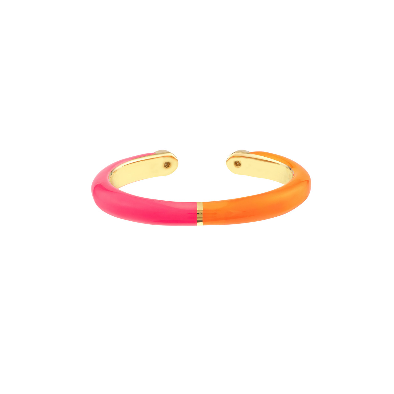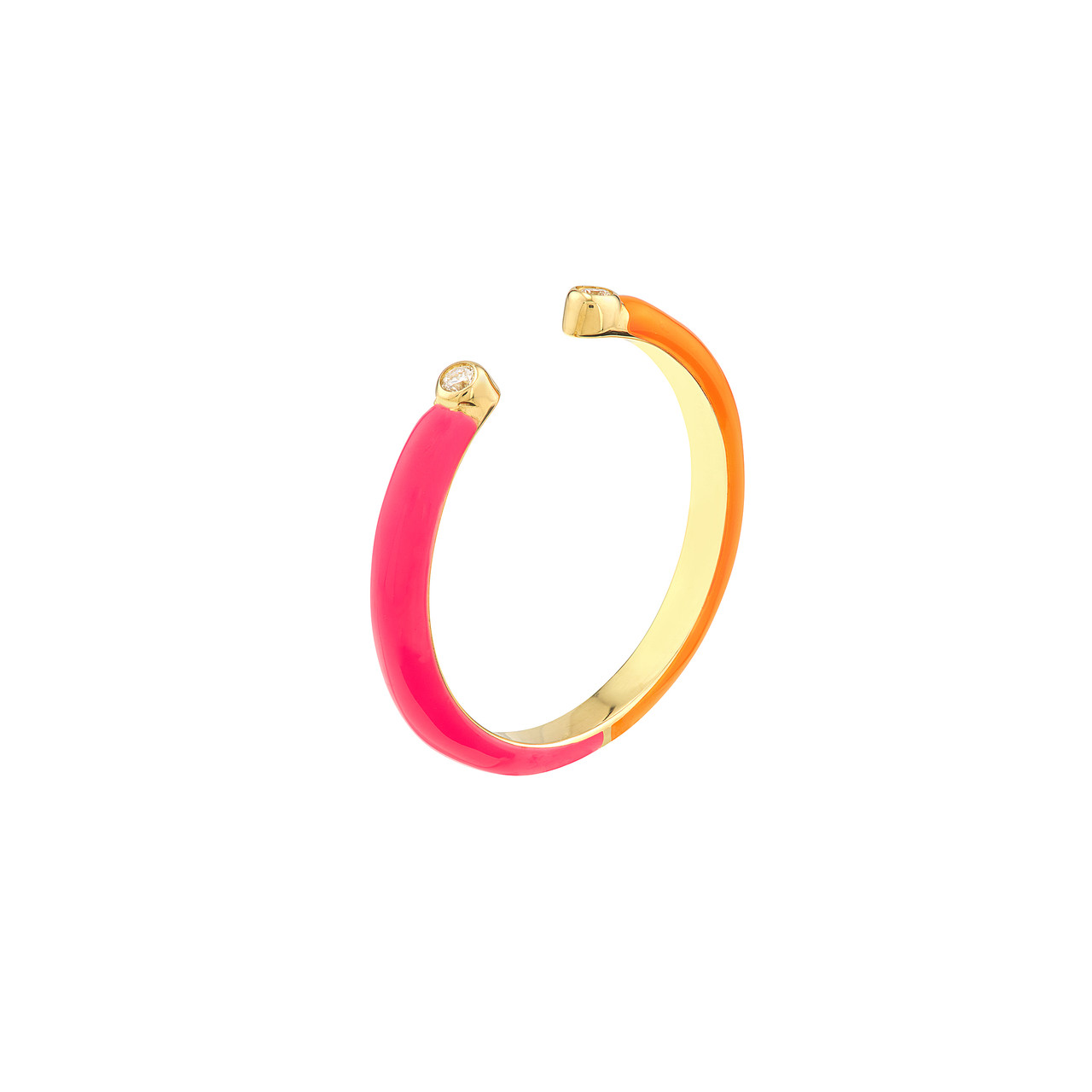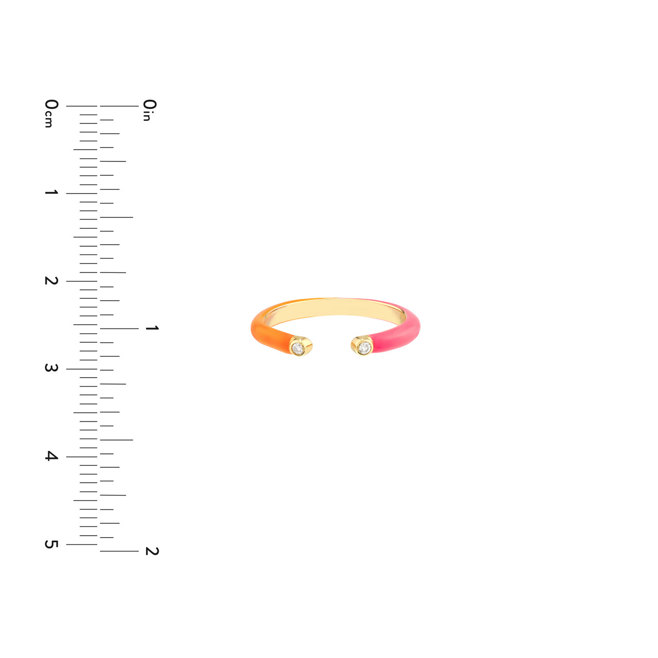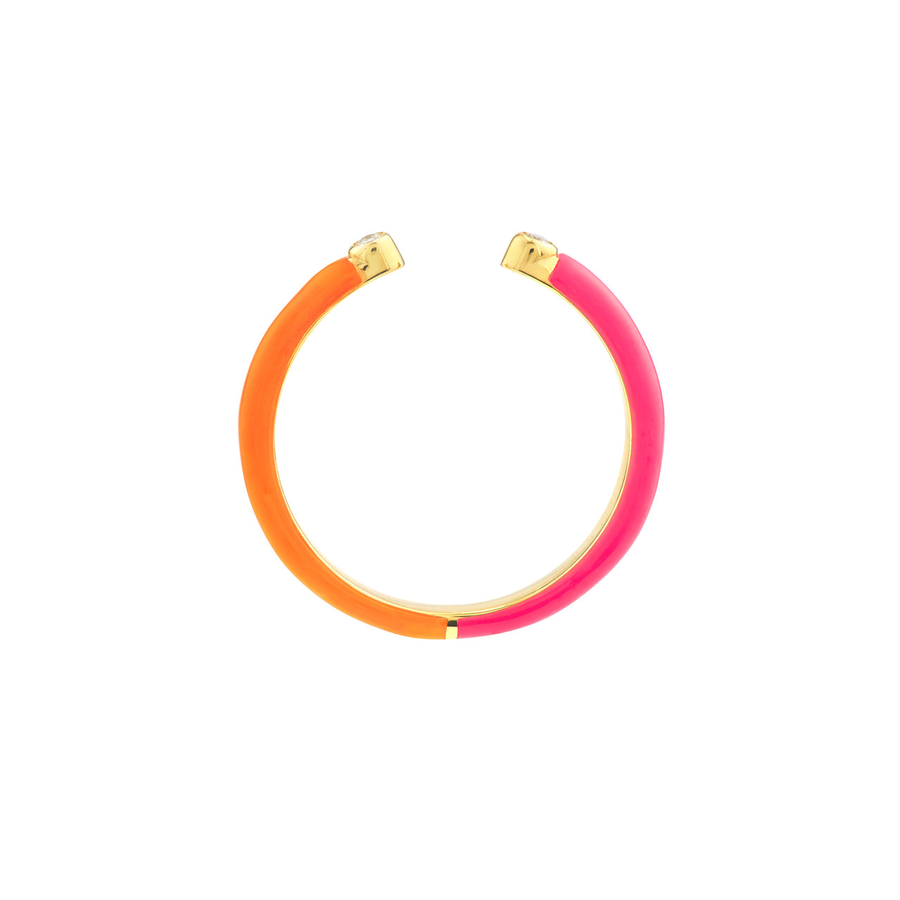 Diamond Cuff Ring 1/2 Pink 1/2 Orange Enamel