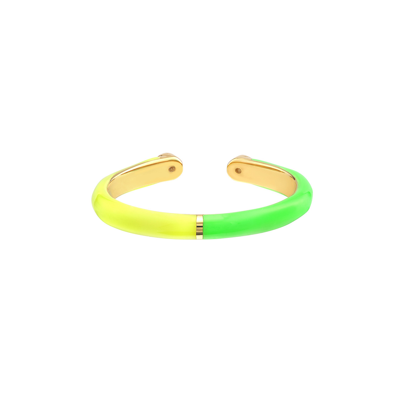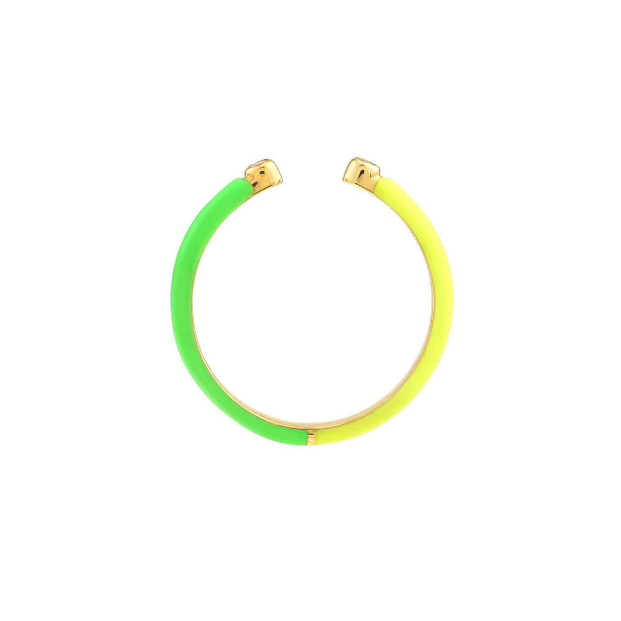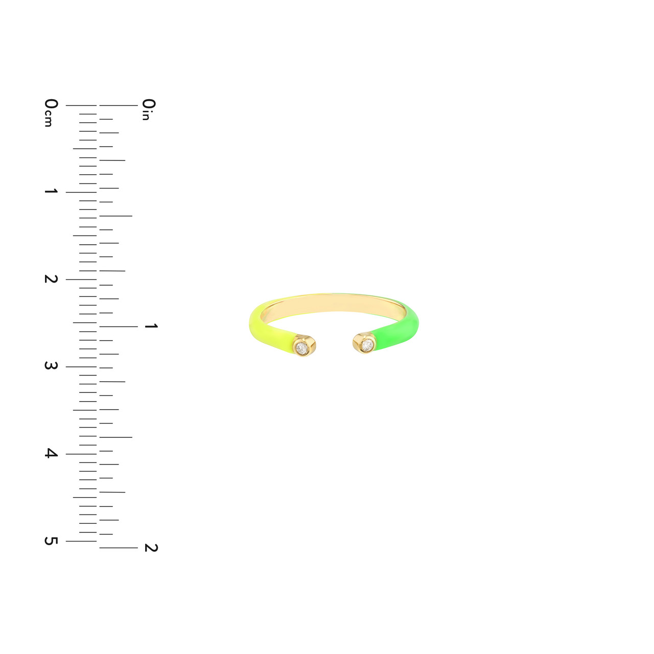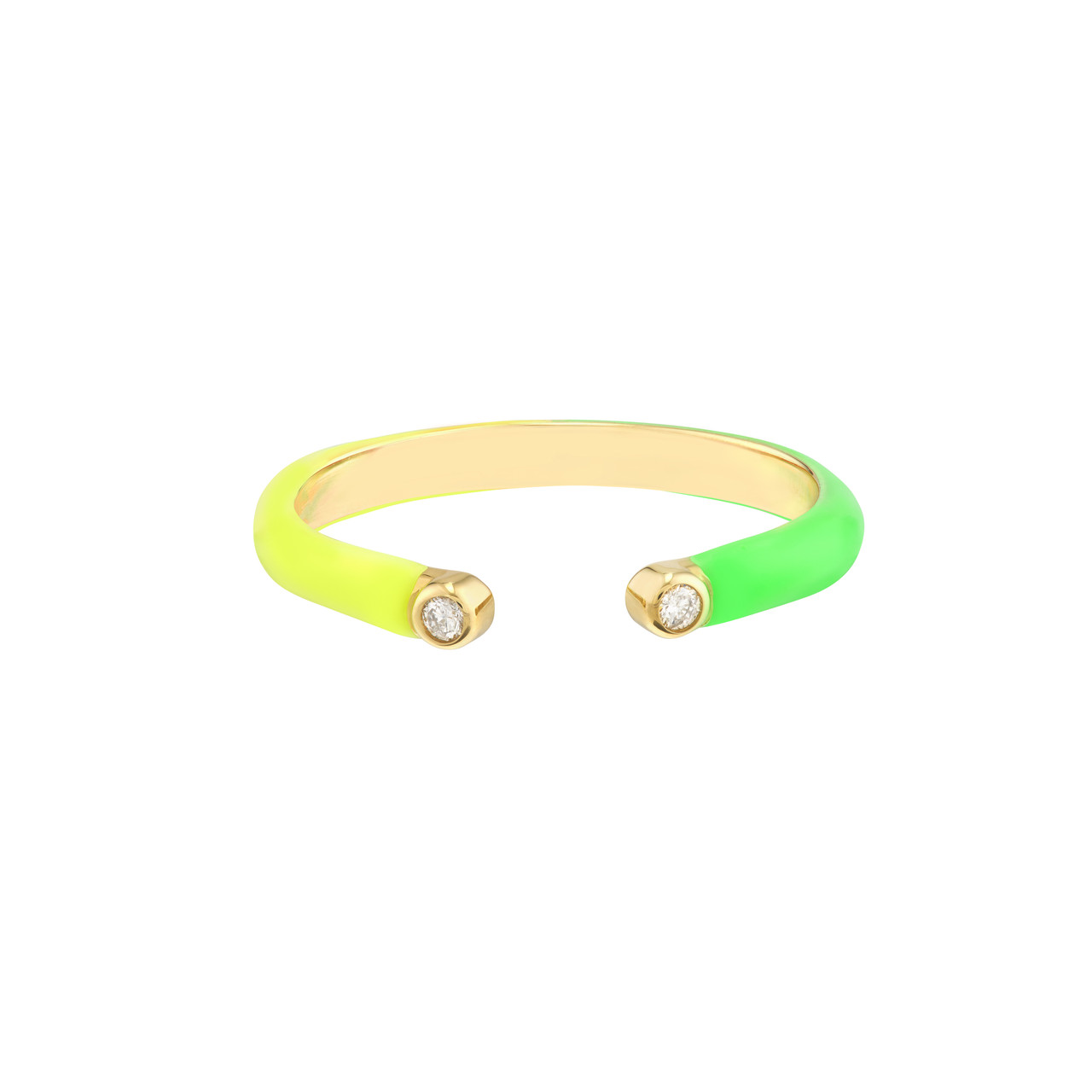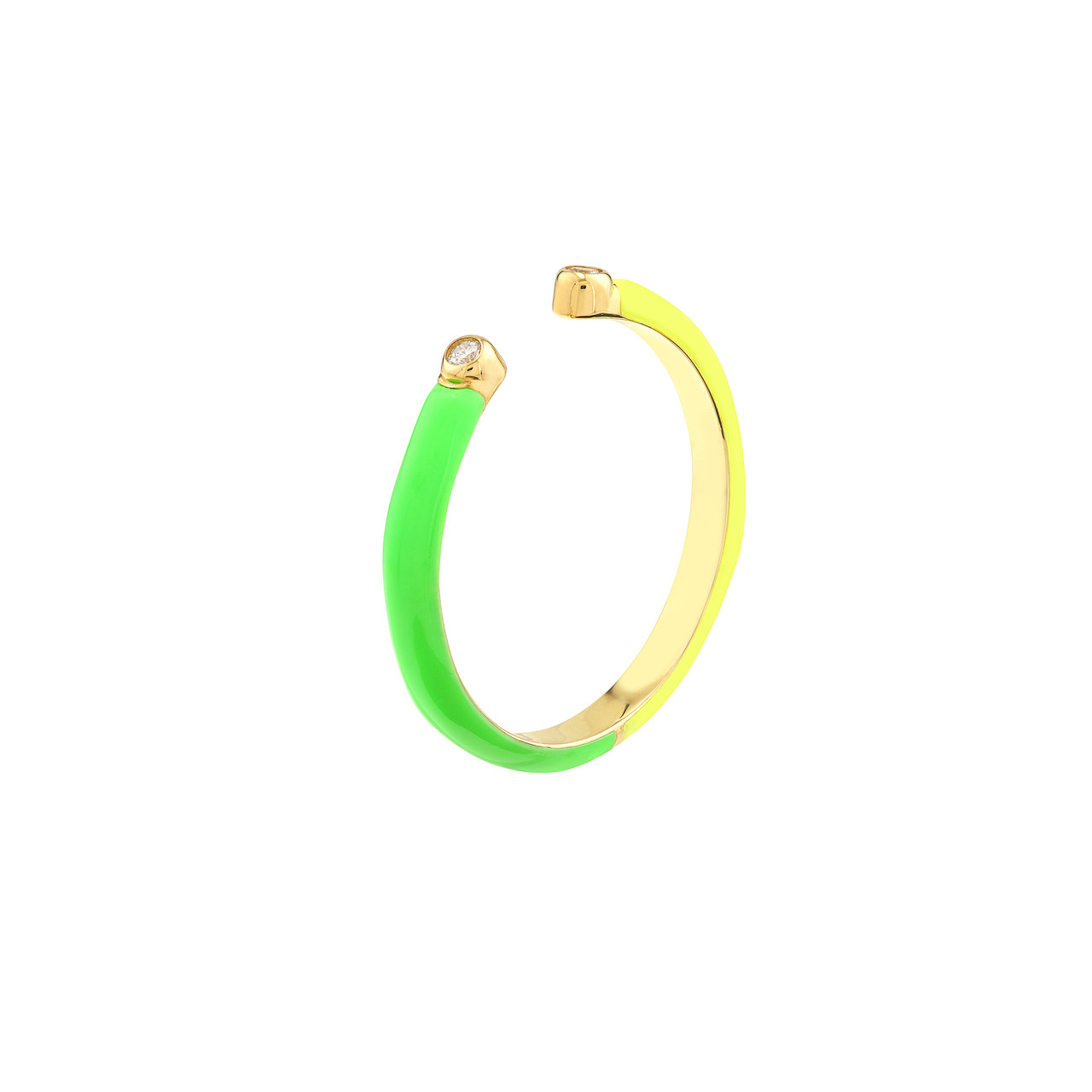 Diamond Cuff Ring with 1/2 Green 1/2 Yellow Enamel