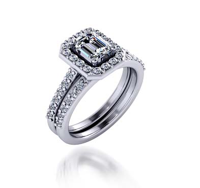 Emerald Cut Halo Style Engagement Ring .90 Carat Total Weight