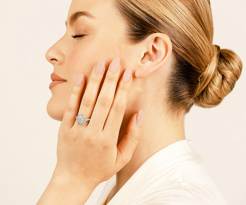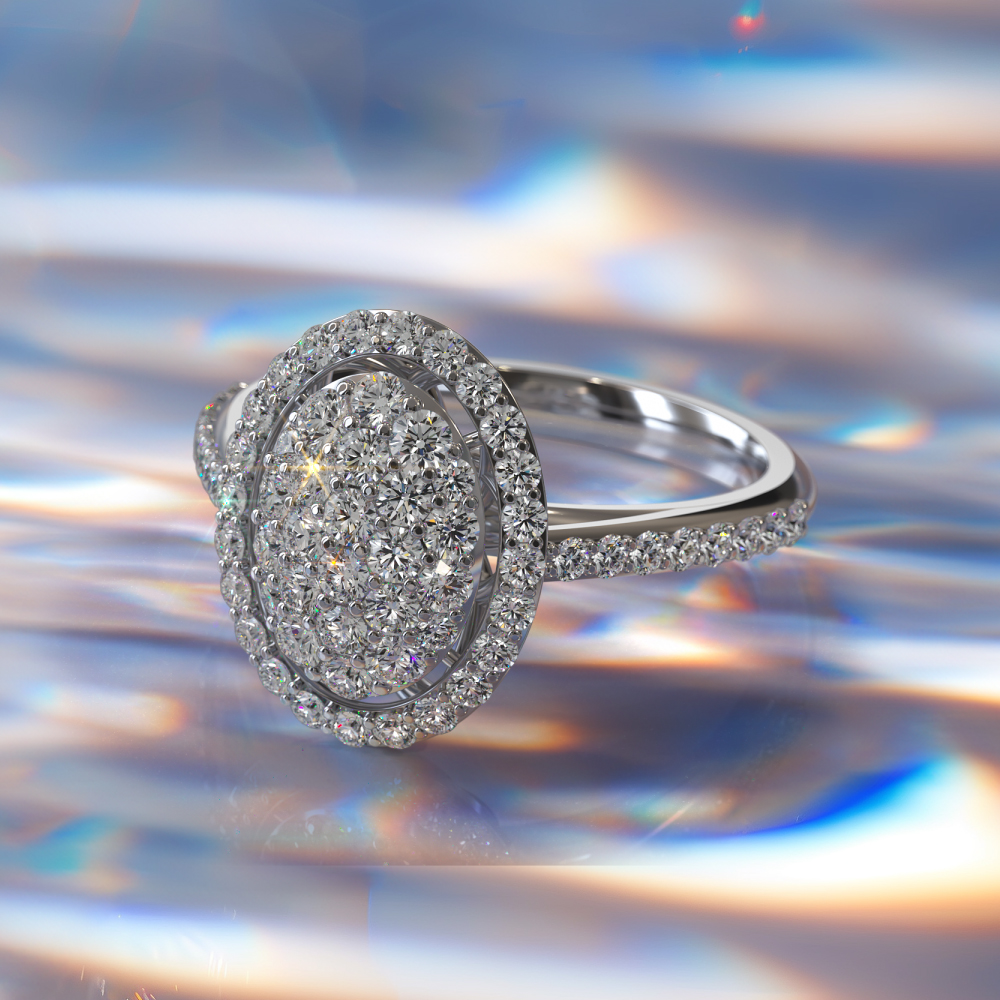 Oval Illusion Diamond Accented Ring 1.0 Carat Total Weight