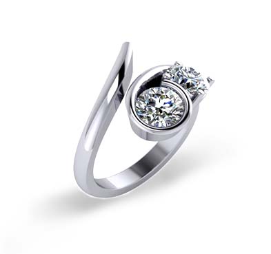Prong Bezel Curve Two Stone Diamond Ring 1/4 Carat Total Weight