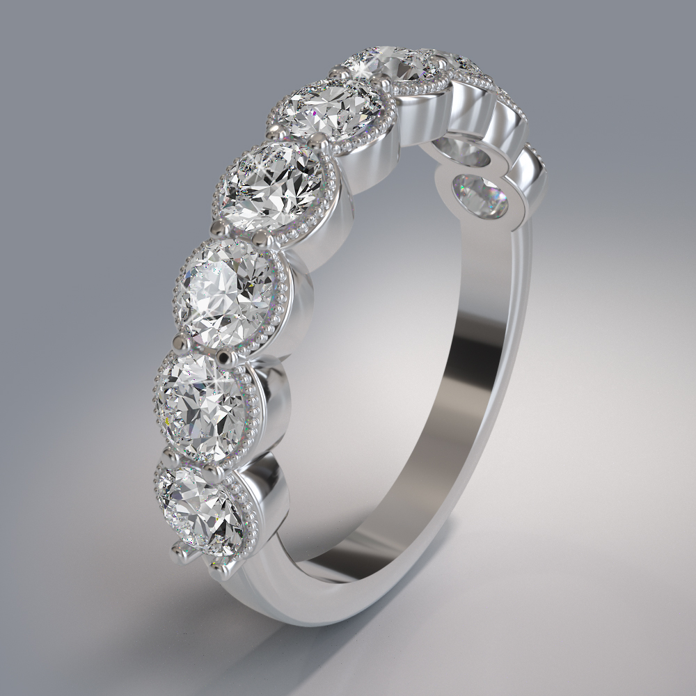 Round Milgrain Diamond Anniversary Ring 0.66 Carat Total Weight