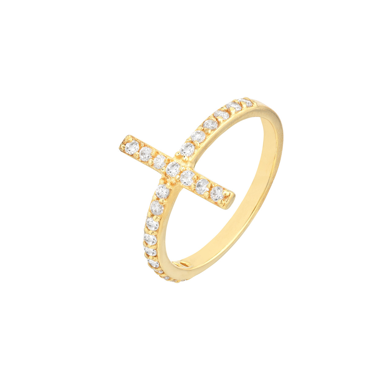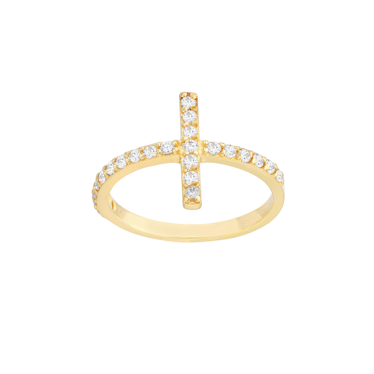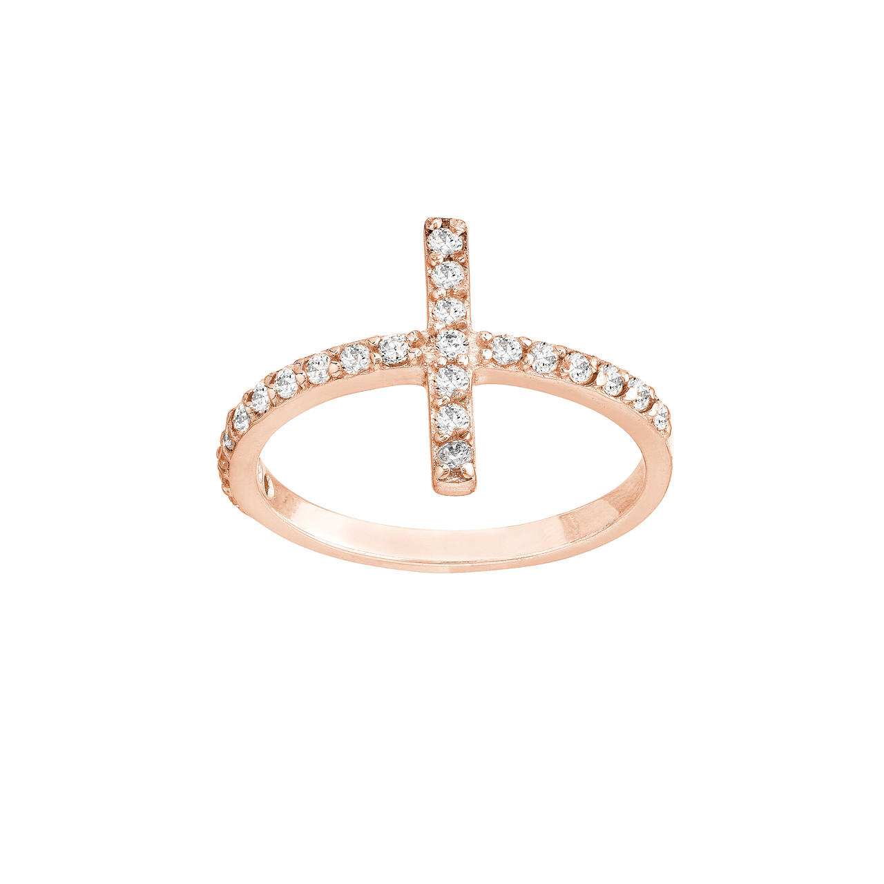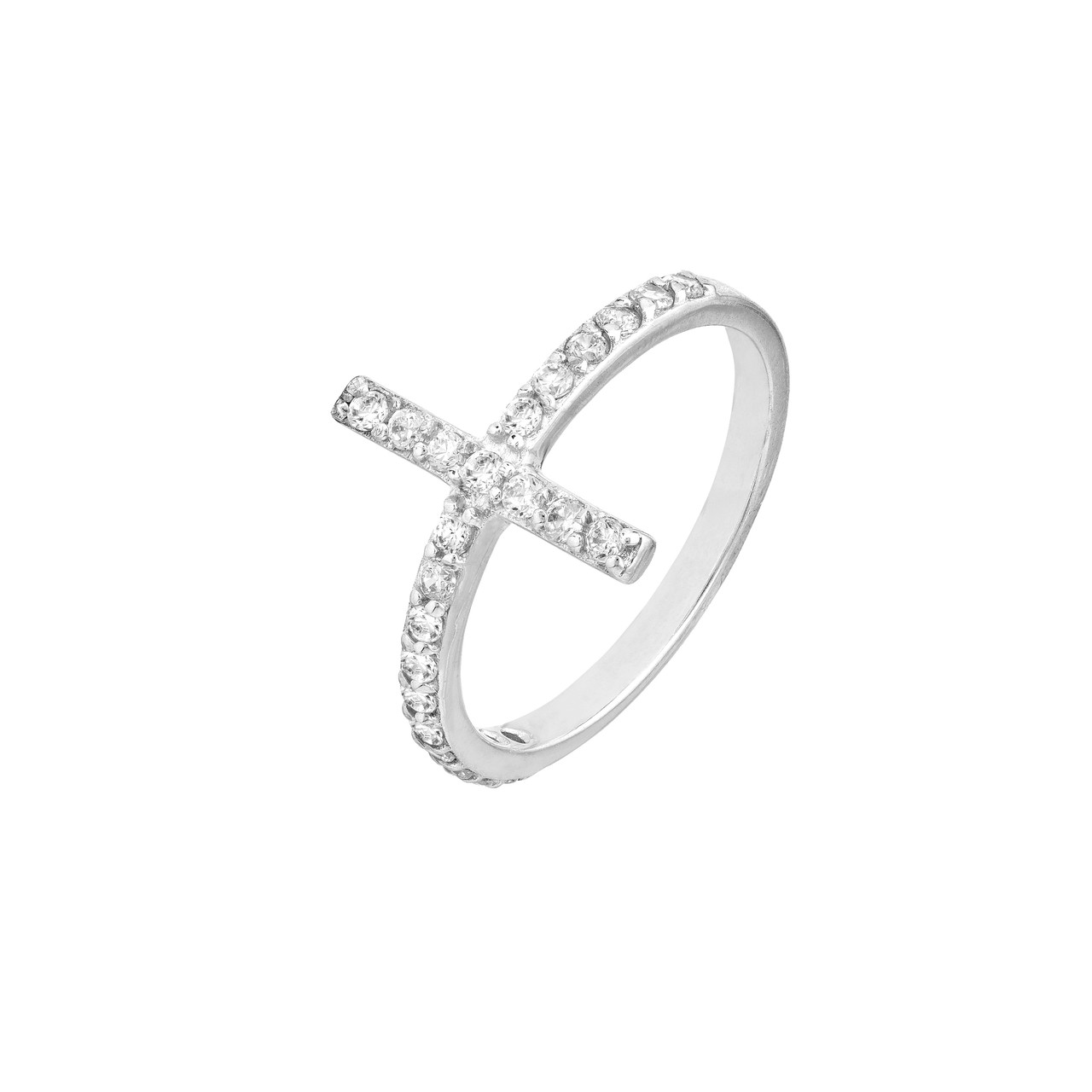Sideways CZ Cross Ring