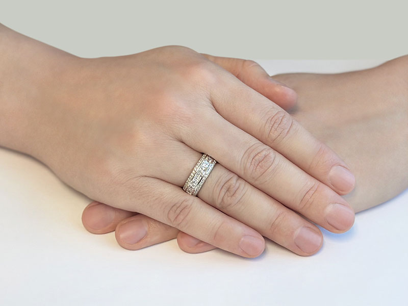 Three Row Princess Cut and Diamond RIng Ring 1.09 Carat Total Weight