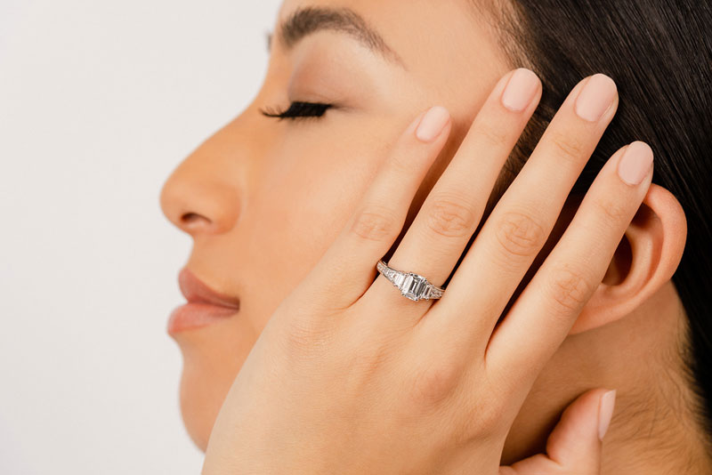 Three Stone Emerald and Princess Engagement Ring 1.0 Carat Total Weight